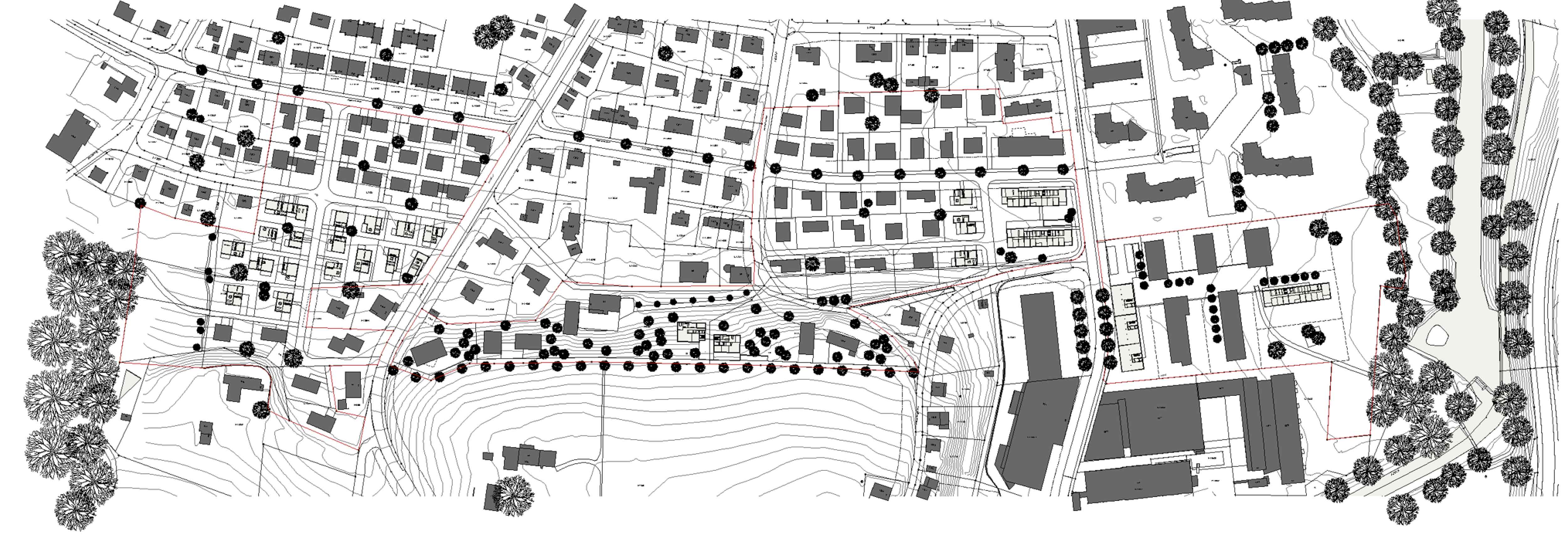 An der Hangkante, welche den Siedlungsrand am Übergang zur Landwirtschaftszone bildet, ist eine ausgewogene Nachverdichtung, welche die dominante Stellung der bestehenden Villen unterstützt und erhält gesucht.